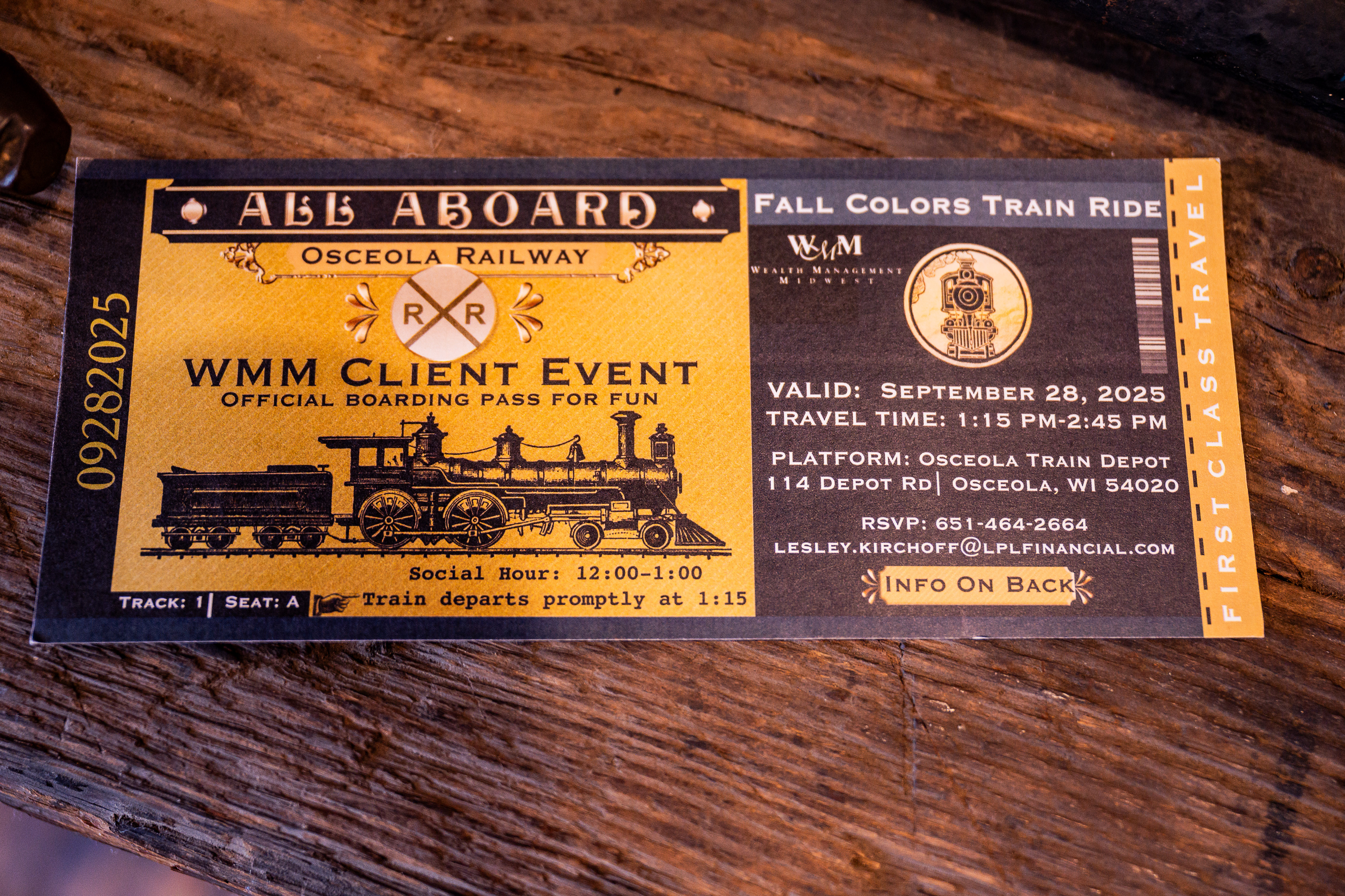 Hawk’s Hangout Food Truck will be on site providing food during our 12:00-1:00 pm “tailgating” social hour. A small number of tables and seating will be available or bring your own to enjoy the scenery and camaraderie. Once on board relax in style with snacks, drinks, and local craft beer to make your ride as indulgent as it is scenic. This will be a perfect way to kick off the Fall season and celebrate WMM partnership with our clients, friends and families. This train ride will provide a unique and memorable way to celebrate the splendor of fall together.